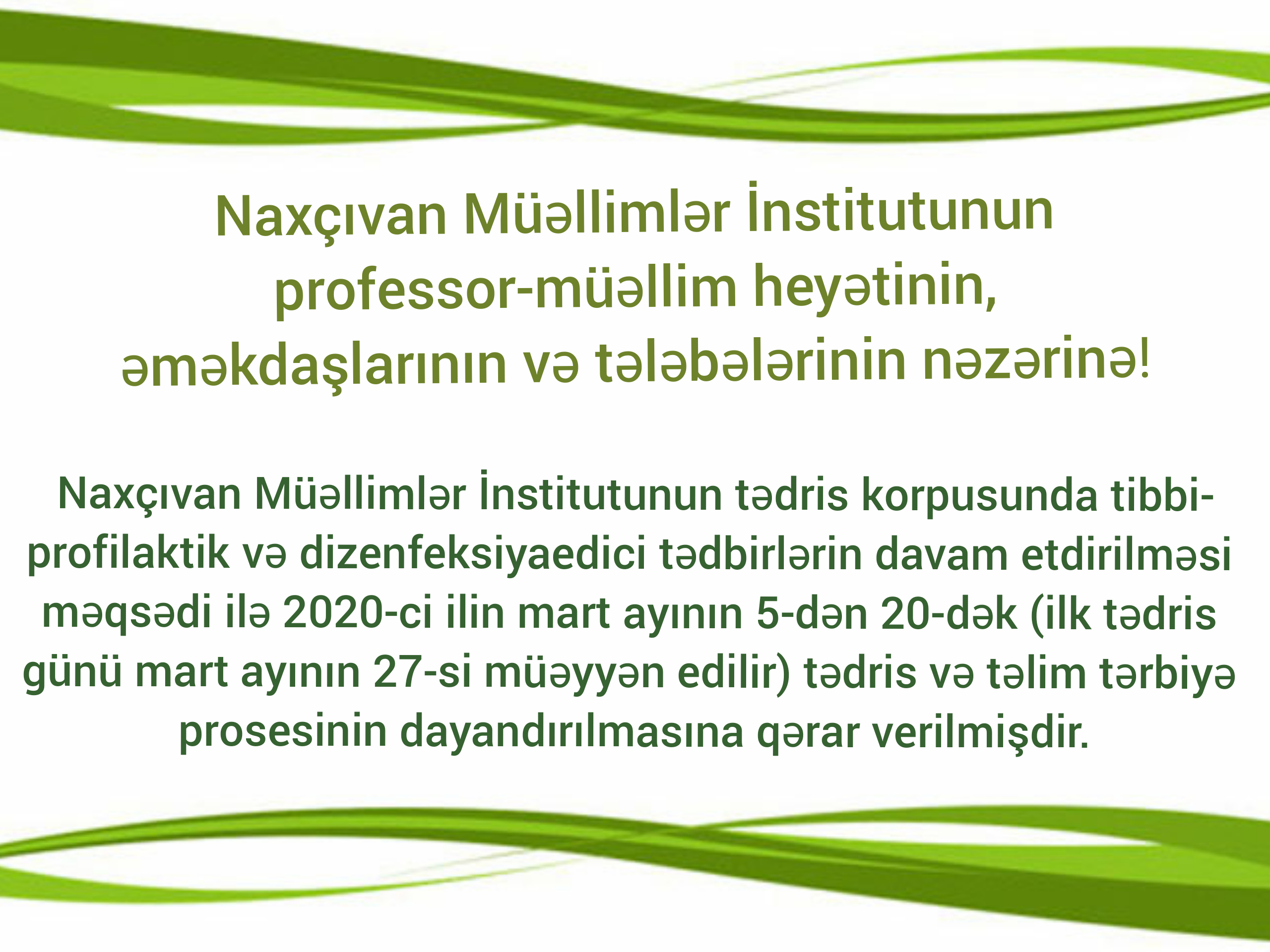 məqsədi ilə 2020-ci ilin mart ayının 5-dən 20-dək (ilk tədris