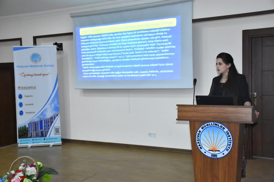 Sonra Pedaqogika və psixologiya kafedrasının müəllimləri Leyla Qurbanovanın “Məktəbəqədər təhsildə fəal təlimin metodlarından istifadə” mövzusunda, Aynurə Məmmədovanın “Məktəbəqədər təhsildə inkluzivlik” mövzusunda, Psixologiya üzrə fəlsəfə doktoru, dosent Salatın Hacıyevanın “Məktəbəqədər təhsildə uşaqların fərdi psixoloji xüsusiyyətlərinin nəzərə alınması” mövzusunda çıxışları dinlənilib. Diqqətə çatdırılıb ki, metodik işin təşkili zamanı səriştəlilik, şəraitin, dəyərlərin oriyentasiyası, pedaqoqun təcrübəsi və peşəkarlıq səviyyəsi, motivasiya qurma xüsusiyyətləri və tərbiyəçi-müəllimlərin öz peşəkarlıqlarına münasibəti nəzərə alınmalıdır. Bildirilib ki, metodik işin yenilənməsi parametrləri- pedaqoji kadrlarla işin təşkili, ənənəvi təcrübədən yaradıcı istifadə, təlim prosesinə yeniliklərin daxil edilməsi təcrübəsinin təkmilləşdirilməsi də vacib məsələlərdəndir. Həmçinin təlim-tərbiyə prosesində aparılan işlərdə valideynlərin iştirakı və onların dəstəyinin zəruriliyi həlledici rol oynayır.