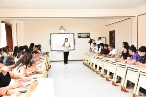 Sonra Elm və innovasiya məsələləri üzrə prorektor dosent Qurban Qurbanlı təlim haqqında öz fikirlərini bölüşüb, təlimçi Sevinc Eylazovaya interaktiv təlim üçün təşəkkürünü bildirib.